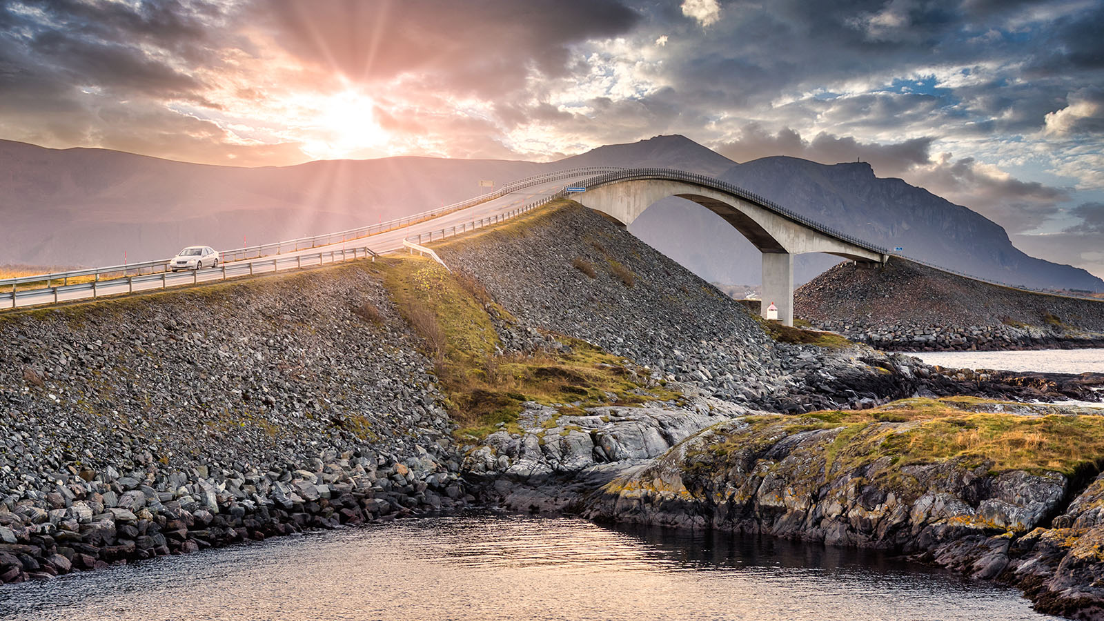 Vi startar dagen med en god frukost och därefter går vi ombord på M/S Vesterålen, Hurtigrutens fartyg. Vi seglar ut genom den vackra Trondheimsfjorden, 170 kilometer lång och 25 kilometer bred. Som de flesta norska fjordar är den också djup, 577 meter som mest. Längs färden kommer du att förstå hur mycket fisket har betytt för kustkommunerna. Kristiansunds läge har gett staden dess näring inom fiske, skeppsbyggnad och oljeindustri. Kallas för Norges klippfiskhuvudstad för sin långa historia av klippfiskexport. Staden ligger idylliskt belägen på fyra öar mot den brusande Atlanten i de nordvästra delarna av Fjord Norge. Framåt eftermiddagen är vi framme i Kristiansund, landskapet Nordmøres huvudstad. Här möter vår buss upp, vi ska nu åka en tur längs den imponerande Atlanterhavsveien som följer Atlantkusten och länkas samman av öar och skär via 8 broar. Därefter till Quality Grand Hotel. Gemensam middag på kvällen.